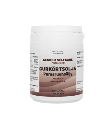 Gurkörtsolja från Kenkou Selfcare framställs ur frön från gurkört (Borago officinalis). Oljan innehåller GLA (gammalinolensyra), en omega-6-fettsyra som även förekommer i andra växtkällor. Tack vare kapselformen blir produkten enkel att dosera och smidig att använda i vardagen.
