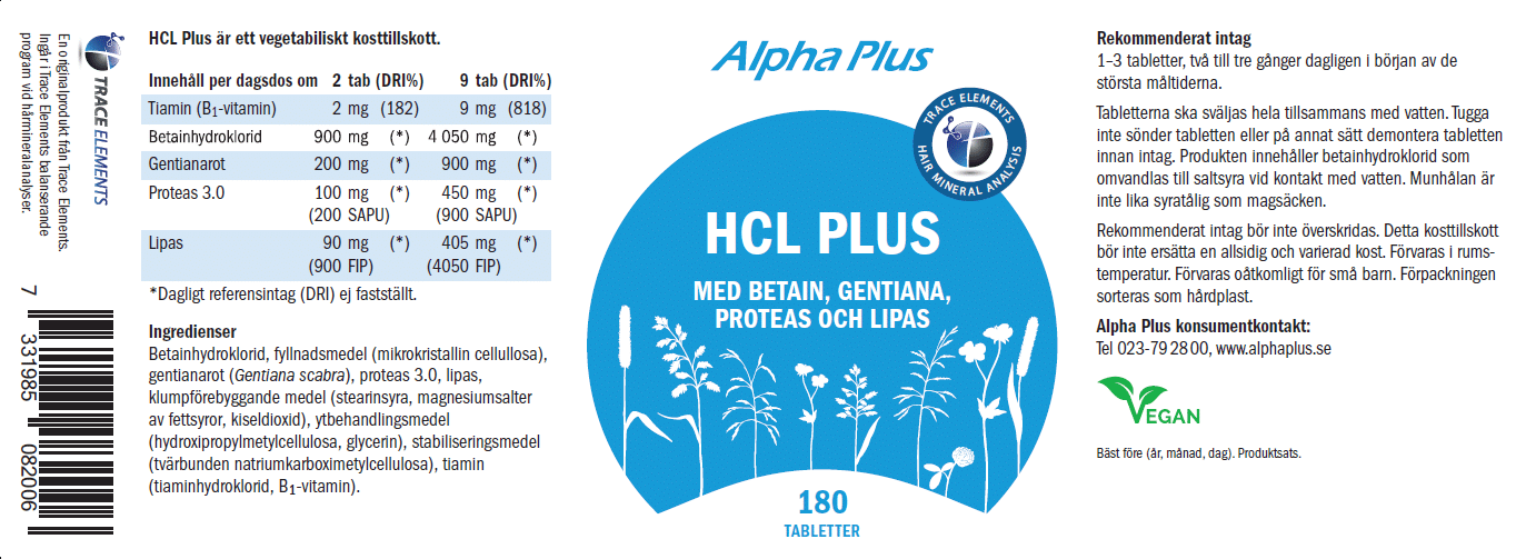 HCL Plus levererar betainhydroklorid, gentiana, proteas, lipas och vitamin B1 i en enda praktisk kapsel. Tack vare denna sammansättning blir produkten enkel att använda och praktisk att inkludera i vardagen. Du kan dessutom enkelt kombinera den med en individanpassad näringsbalansering efter hårmineralanalys.