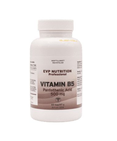 Pantotensyra innehåller vitamin B5. Varje kapsel ger 500 mg vitamin B5.