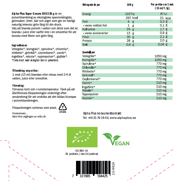 Super Greens EKO – produktinformation